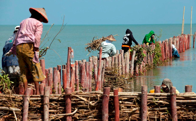 In Demak, “Building with Nature” combines ecological restoration with light engineering—using permeable structures to trap sediment and support mangrove recovery, stabilizing shorelines and reducing erosion risk. This approach explicitly aims to use natural processes rather than fighting them.