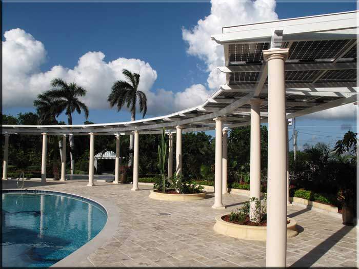 - Shaded PV canopies integrate solar panels into pergolas, dining areas, and pool pavilions, generating clean energy while providing shade. When connected to battery storage systems, these can power landscape lighting and other amenities at night.