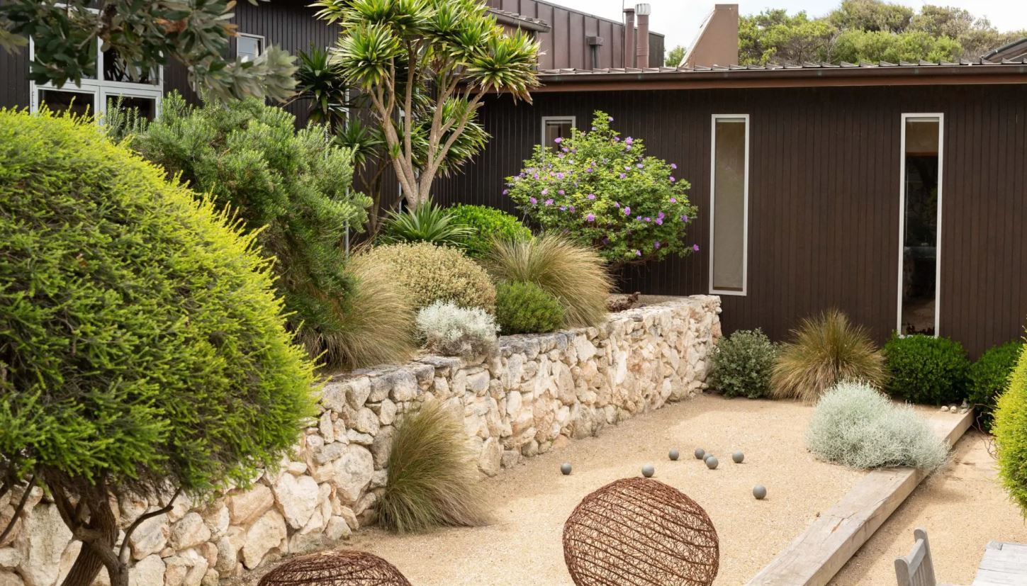Planting leans heavily on Australian coastal natives: Westringia fruticosa, Leptospermum, Banksia and a spectrum of native grasses and groundcovers, all well adapted to wind, salt and drought. The result is a garden that feels inseparable from the surrounding coastal heath, while still delivering strong form and year-round interest.