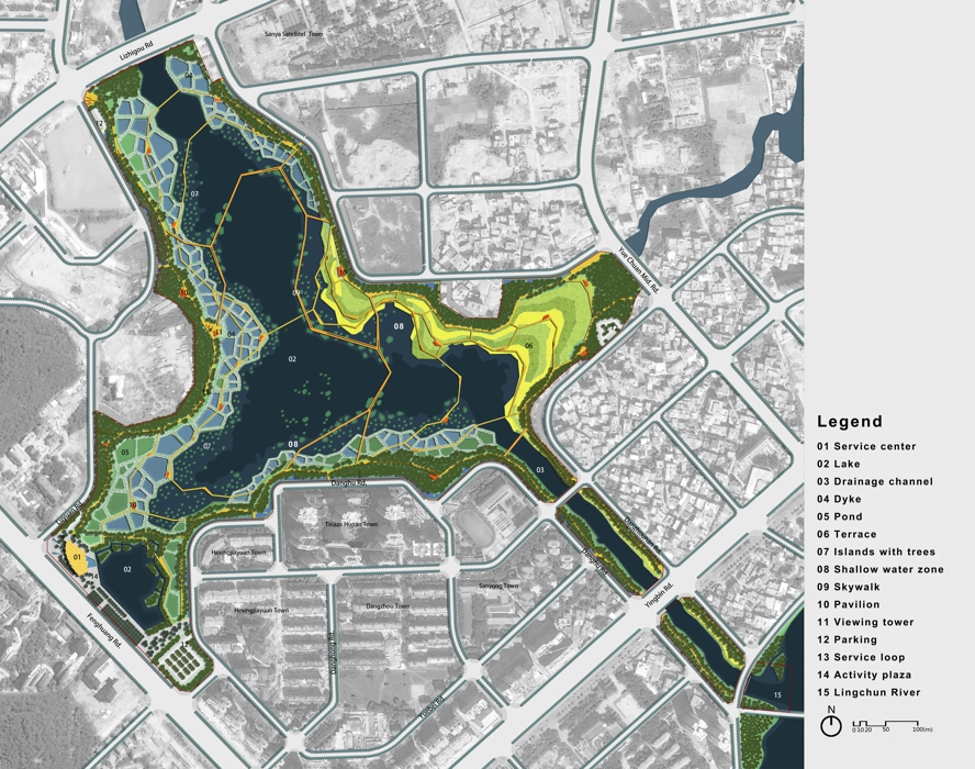In projects like the Sanya Dong'an Wetland Park, Turenscape merges natural hydrology with cultural interpretation, turning flood-prone coastlines into educational landscapes that honour both ecology and local maritime traditions.