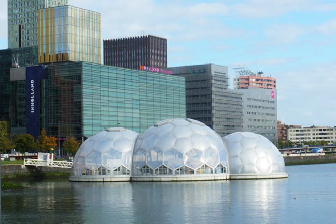 Rotterdam’s Solar-Powered Floating Pavilion is an Experimental Climate-Proof Development (Source: Jason Sedar_Inhabitat.com)