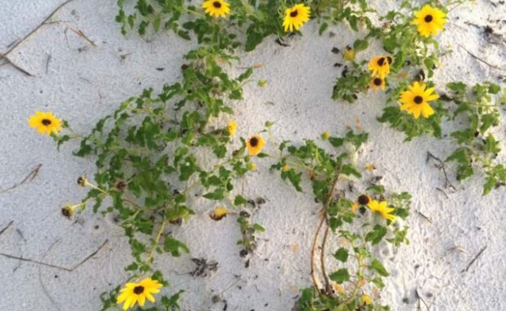 In these environments, sea oats appear again on exposed dunes, but you also see groundcovers such as beach sunflower (Helianthus debilis) and inkberry / beachberry (Scaevola plumieri). Florida research and extension bulletins describe H. debilis and S. plumieri as native, salt-tolerant plants for dune and upper-beach zones in roughly zones 9–11, valued for both stabilisation and habitat.