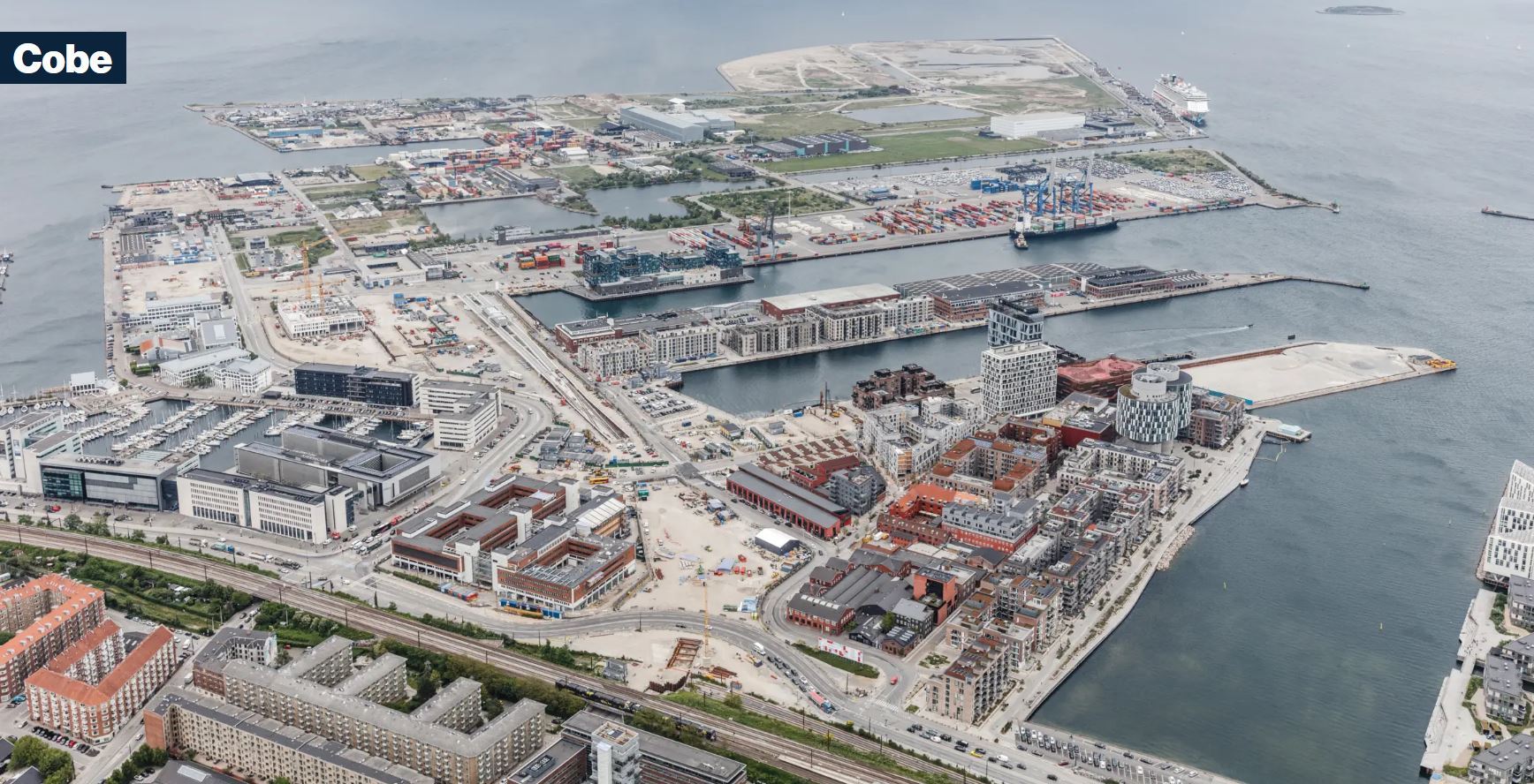 Program: Master plan for new city district in former industrial harbour area, including development plan, district plans, design of public spaces, streetscapes and promenades, landscaping, bicycle infrastructure and metro stations. (Source: cobe.dk)